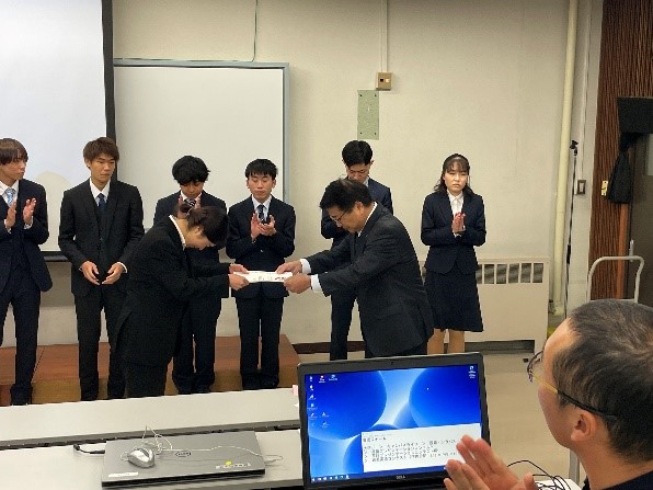 令和5年12月13日、岐阜薬科大学三田洞キャンパスにおいて、本学と岐阜薬科大学との共催で英語プレゼンテーションコンテストが実施されました。同コンテストには本学から1名が参加し、英語英文学科2年生の古本涼乃さんが“Challenges Improves Me”というタイトルで参加し、2位入賞となりました。