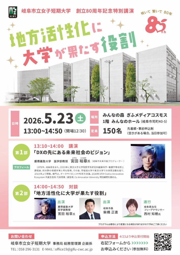 岐女短が今年5月30日に創立80周年を迎えるのを記念して、特別講演を開催します。