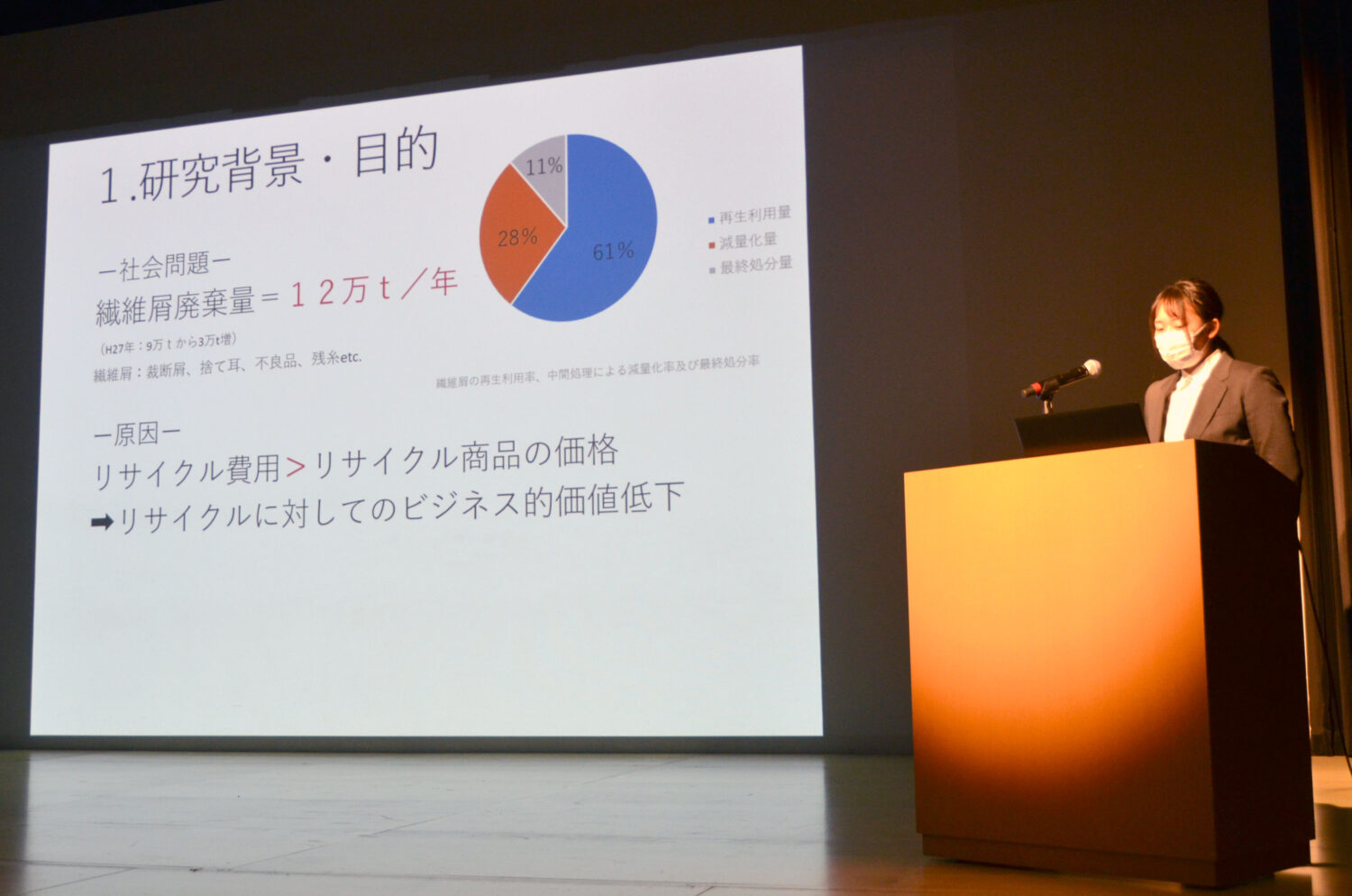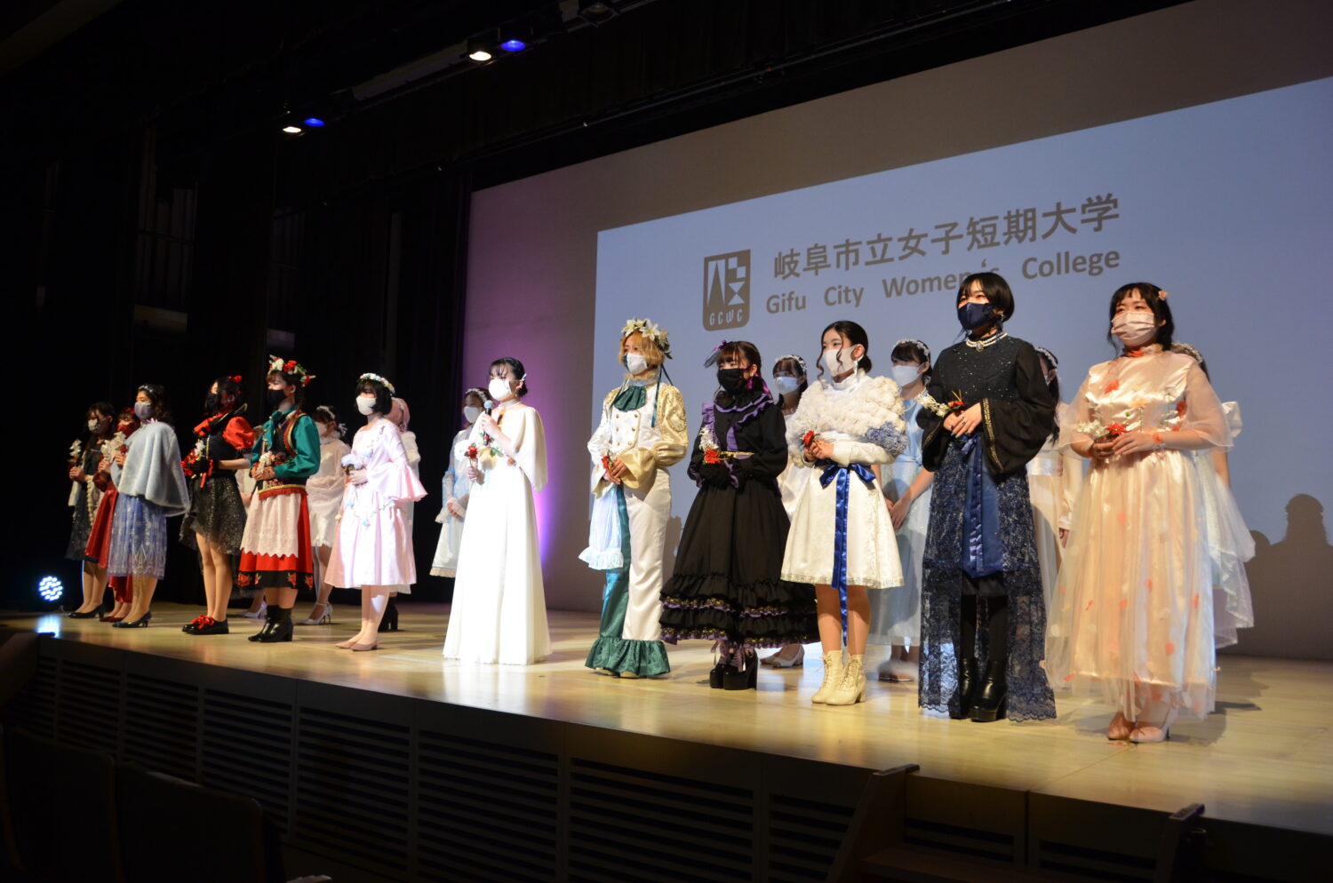 生活デザイン学科では、令和3年12月24日(金)~27日(月)、ぎふメディアコスモス・みんなのギャラリーで、令和3年度卒業研究・制作展を開催いたしました。12月25日(土)には同みんなのホールにて研究発表・ファッションショーを非公開で行い、柴橋正直市長がご来場の中、2件の研究発表、7研究室45点の作品紹介、衣装作品25点のファッションショーを行いました。