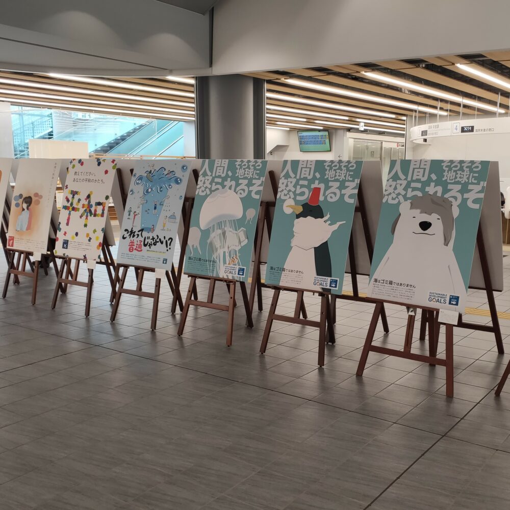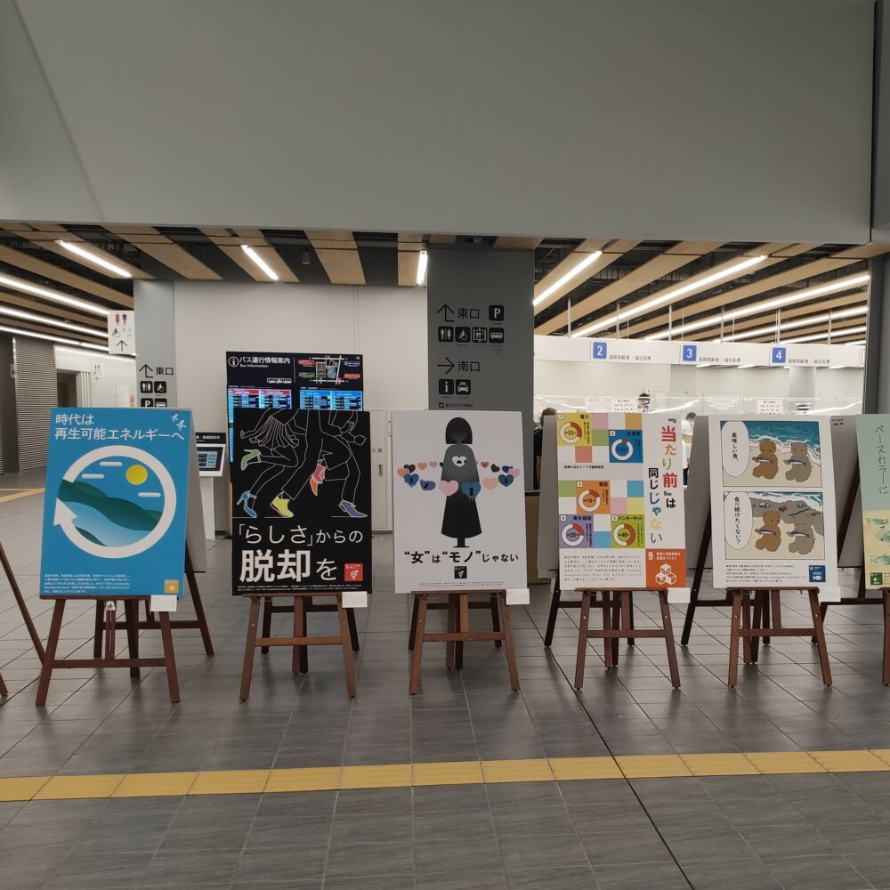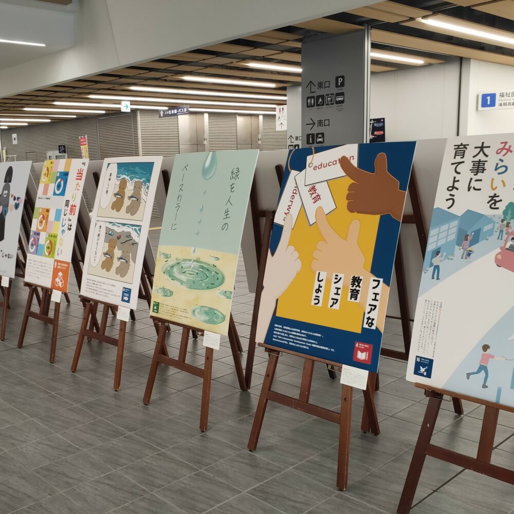 生活デザイン学科ヴィジュアル専修の学生が制作した「SDGsの啓発を目標とした情報発信ポスター」を市庁舎に展示しています