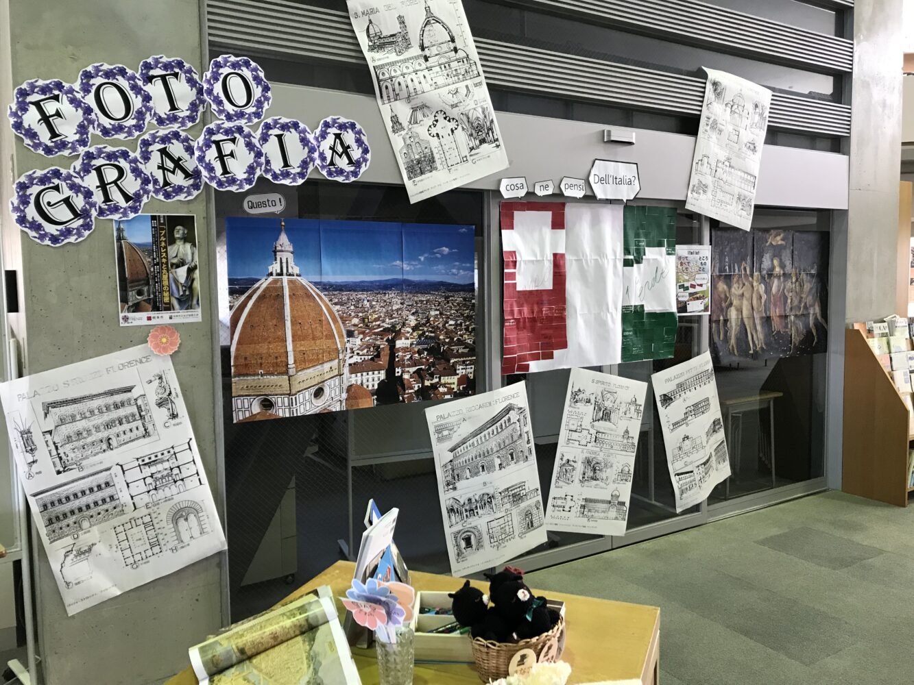 学内は、学生がフィレンツェについて調査したポスター等が掲示され、華やかになっています。