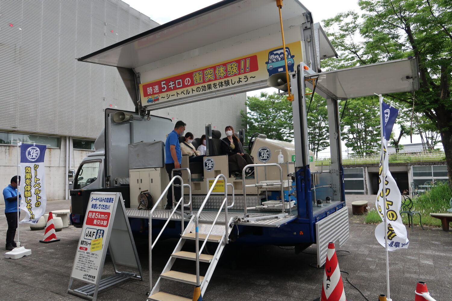 岐阜北地区交通安全協会島支部、岐阜北警察署、JAF(日本自動車連盟)の協力の下、シートベルト効果体験や飲酒状態疑似体験を実施しました。